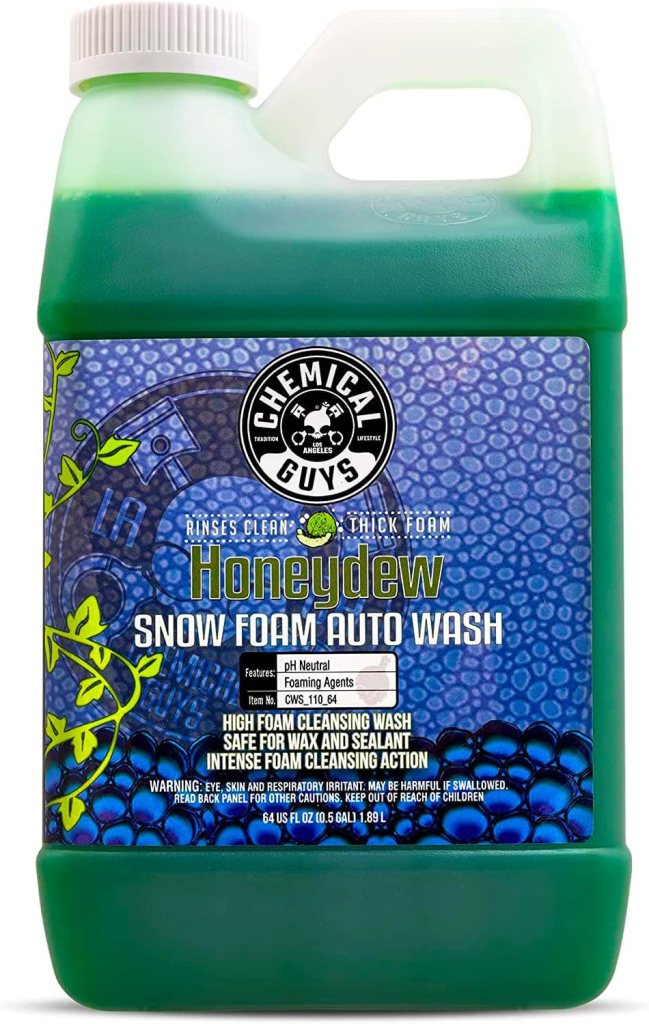 Car Wash Soap: Honeydew Snow Foam is thicker, slicker, and more gentle than ever before. Powerful hyper surfactants cut through dirt and grime, lift them from sensitive automotive paintwork with billions of scrubbing bubbles, then safely lubricate and guide them off the paint for a scratch-free wash. The pH-neutral formula is gentle on wax coatings, and safe to use in direct sunlight for a spot-free wash. Turn every Sunday morning car wash into a foam party with Honeydew Snow Foam. Honeydew Snow Foam is gentle and surface safe so it can clean any area of your vehicle from wheels to paintwork. The pH-balanced formula even allows you to wash your car or truck in direct sunlight. Honeydew Snow Foam rinses clean every time with no residue for a clean surface that will grab attention.
