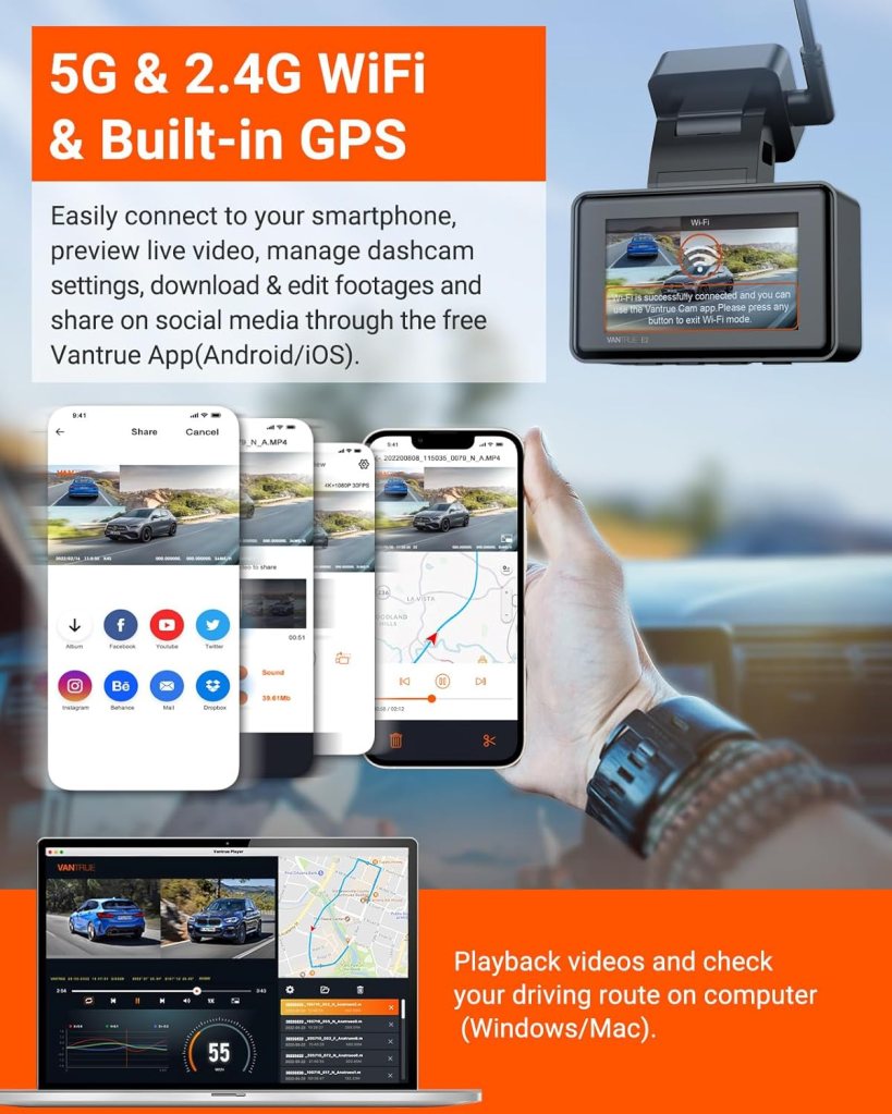 The Vantrue E2 Dual Dash Cam is a strong all-around performer that gives drivers confidence and protection from every angle. With its dual-camera setup, smart connectivity, and dependable build, it’s one of those upgrades that just makes sense — because sometimes, having proof makes all the difference.